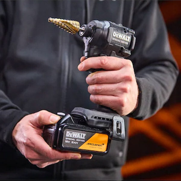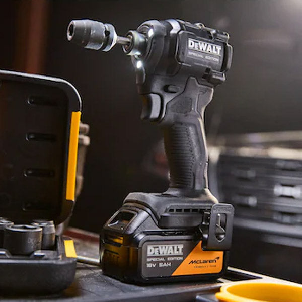 Introducing the DEWALT x McLaren F1 Team 18V XR Impact Driver, where engineering excellence meets high-octane innovation. This special edition tool combines durability with cutting-edge technology. Whether you're in the pit or on the job site, experience the power and precision that champions rely on.
