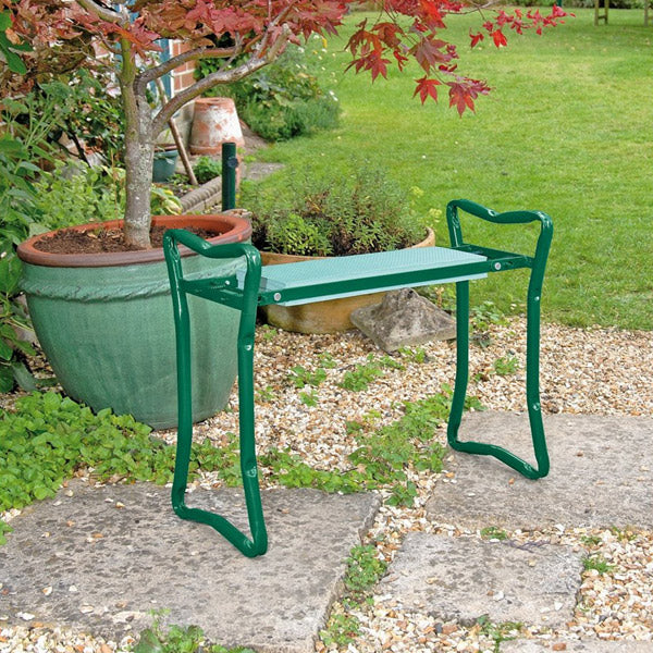 Sturdy tubular steel frame with folding legs. Padded knee cushion for extra comfort. Useful for planting, painting and other household tasks. Maximum carrying weight 100kg.