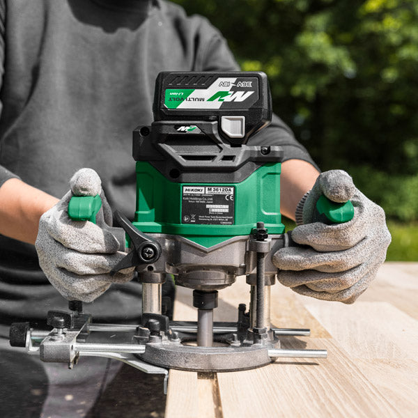 The world's first cordless 1/2" router, the HiKOKI brushless 36-volt router features a high-performance brushless motor designed to deliver a precise finish. The M3612DA cordless router is designed for smooth groove cutting, window cutting, shaping and more, providing easy manoeuvrability with its compact size and light weight.