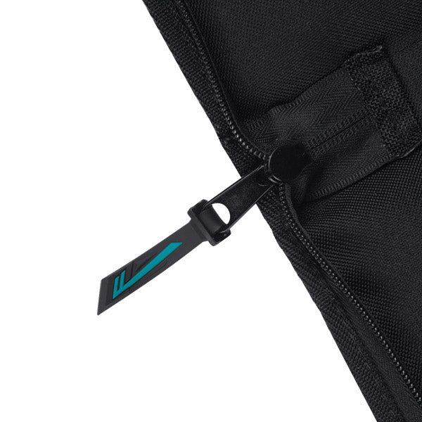 - Adjustable hook and loop straps to secure rails Front pocket with zip for clamps