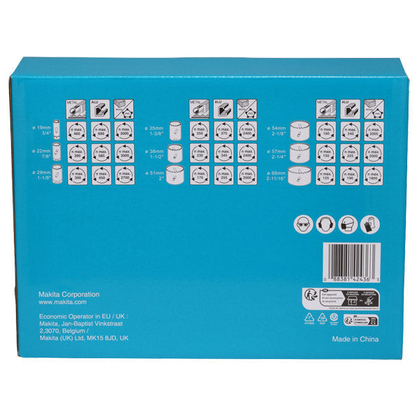 - Holesaw sizes 19, 22, 29, 35, 38, 51, 54, 57 and 68mm