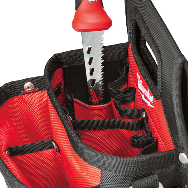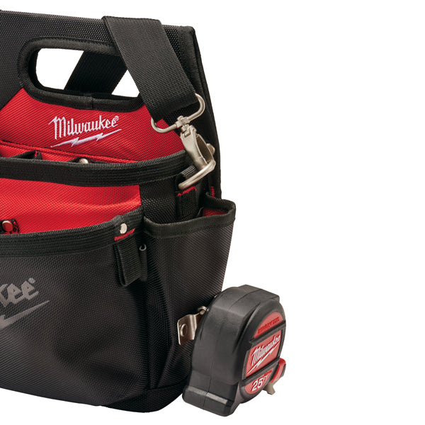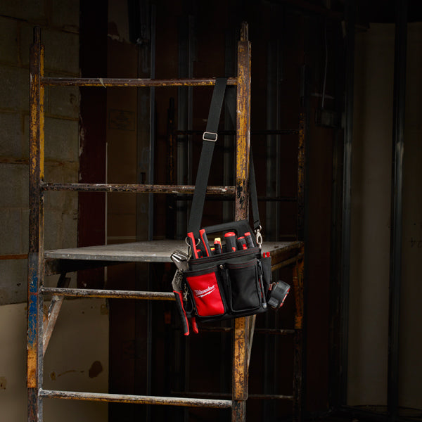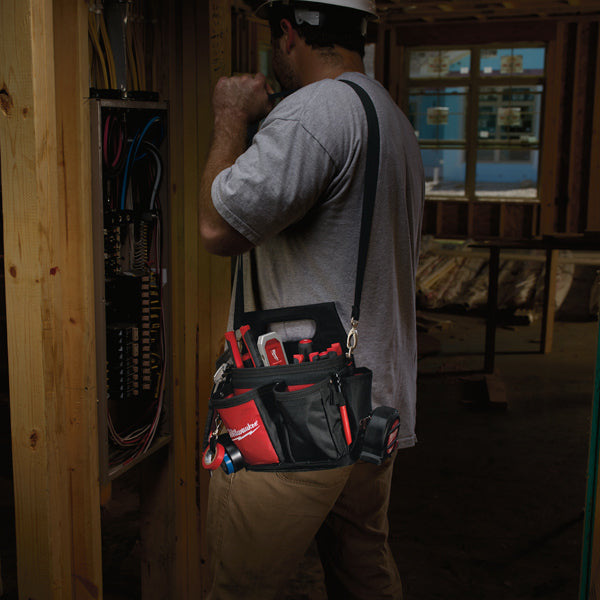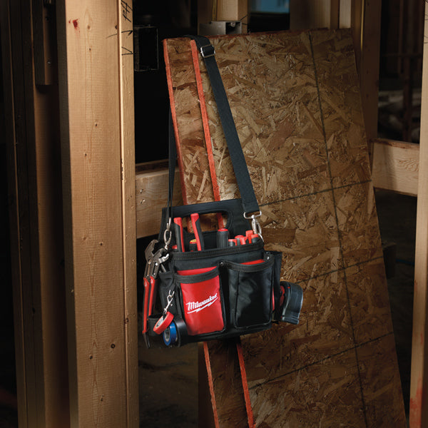 The Milwaukee Electrician Pouch is a handy accessory for carrying your hand tools and small accessories around the jobsite. The integrated handle allows easy transportation and provides a mounting point on common jobsite materials. This pouch can also be attached to a tool belt thanks to the inegrated belt hooks, allowing you to carry the pouch however you see fit.