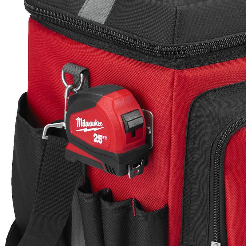 The Milwaukee 4932464835 20 Litre Jobsite Cooler can be a tradesmans best friend especially during the summer. This is one of the best ways to keep food and drink cool on or to and from the jobsite. The supplied padded shoulder strap makes it easy and comfortable to carry. Specifically designed to withstand tough jobsite conditions due to its durable design. This includes the 1680D ballistic material construction, metal zippers and metal hardware on the padded shoulder strap. The attached tape measure clip even doubles up as a bottle opener so you can always be ready to crack open an ice cold one.