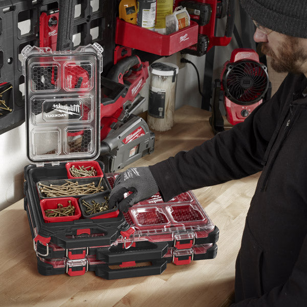 The PACKOUT Large Magnetic Bin can be hung on Wall Plates or stored inside MILWAUKEE PACKOUT Low Profile Organizers and Compact Low Profile Organizers. Each Large Magnetic Bin features a Quick Access Magnetic Dish which can be used to organize and store small items like fasteners, power tool accessories, and more. A Non-Marring Magnetic base allows the bin to be stored on metal items without damaging them. MILWAUKEE PACKOUT is the industry's most versatile and durable modular storage system.