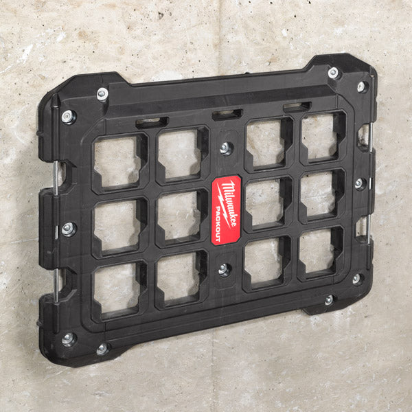 The Milwaukee PACKOUT™ mounting plate is an adaptor for the PACKOUT™ modular storage system which allows you to transform your PACKOUT™ into a stationary storage solution. Simply attach the mounting plate to the inside walls of your van or building to create a strong and secure storage system which frees up floor space for other tools and equipment.