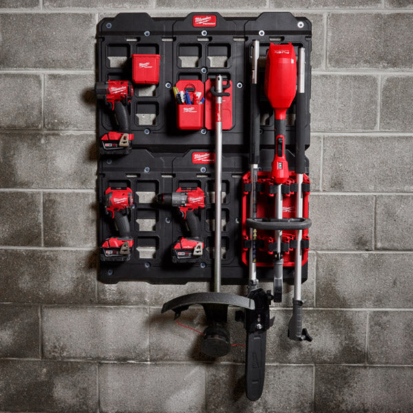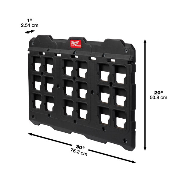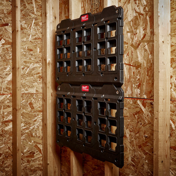 Milwaukee's PACKOUT™ XL Wall Plate features Quick-Alignment Tabs to make installing rows and columns of multiple wall plates easier. This Extra Large Wall Plate is constructed with Metal Reinforced Mounting Points and impact-resistant polymers that ensure secure mounting in shop, transit, and site environments. Milwaukee's XL Wall Plate has a 68kg weight capacity when mounted in the shop, and a 34kg when mounted in vehicles. As part of the PACKOUT™ Modular Storage System, the PACKOUT™ XL Mounting Plate allows you to customize your storage system and keep your storage solutions organized. MILWAUKEE® PACKOUT™ is the industry's most versatile and durable modular storage system.