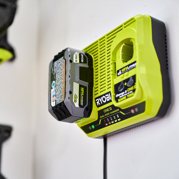 As part of the Ryobi 18V ONE+™ system of over 200 cordless tools for the home, garden, automotive, crafting and much more, the Ryobi 18V ONE+™ RC18240-2C40L Dual Port Charger Kit (2x4ah) is ideal for charging any two Ryobi 18V ONE+™ Lithium batteries simultaneously.