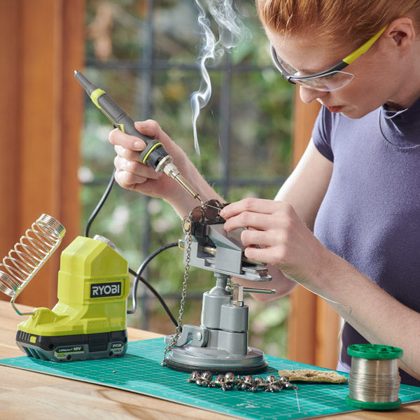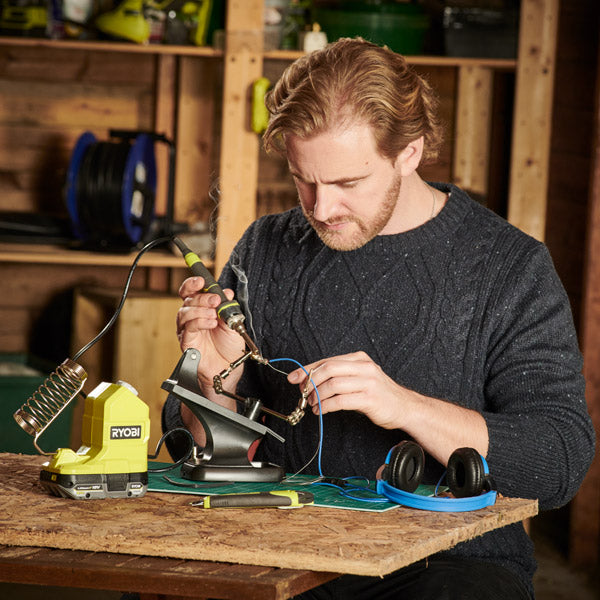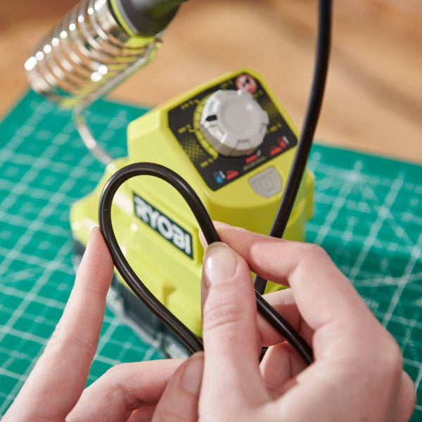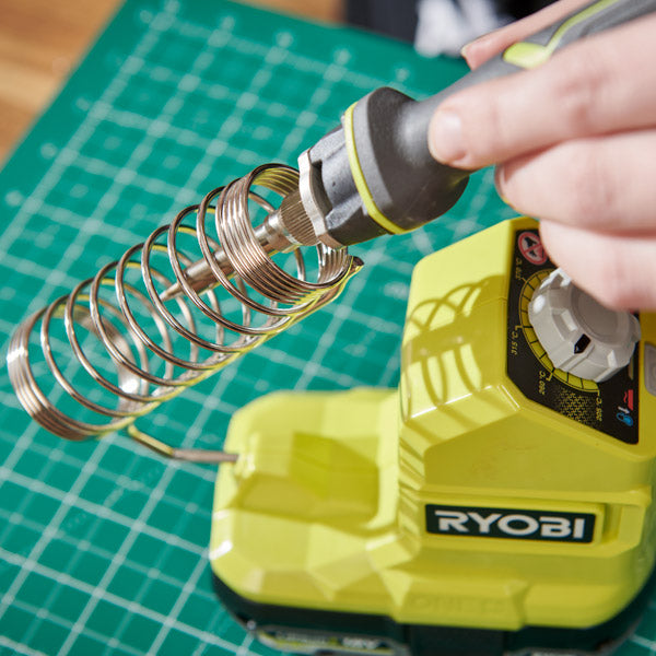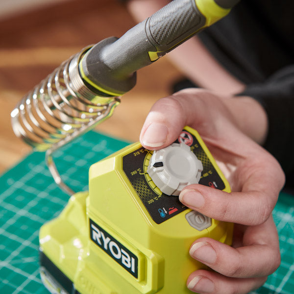 RYOBI introduces the 18V ONE+ 120-Watt Soldering Iron. This innovative soldering iron provides ultimate mobility, allowing you to take it directly to your work space. It fully heats up in under 90 seconds and has an iron holder for safe storage. The temperature control dial will allow you to set and maintain temperatures between 200 and 480 degrees. The LED status indicator lets you know when the tool is heating up, when it's reached its maximum temperature, and when it's cooling down. It also features a 90 cm reach that enables access to applications in hard to reach areas.