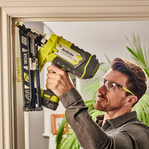 As part of the Ryobi 18V ONE+™ system of over 200 cordless tools for the home, garden, automotive, crafting and much more, the Ryobi 18V ONE+™ R15GN18-0 Cordless 15-gauge finish nail gun is perfect for second fix applications such as installing skirting boards and door architrave, fastening door casings, crown mouldings, coving and much more.