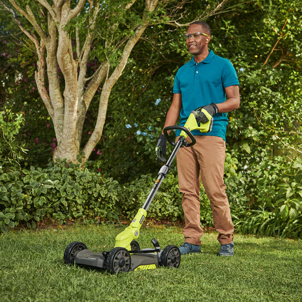 As part of the Ryobi ONE+™ system of over 200 cordless tools for the home, garden, automotive, crafting and much more, the Ryobi 18V ONE+™ RY18LMC30A-120F Cordless 30cm 3-in-1 Lawn Mower, Grass Trimmer and Edger is the perfect tool for the smaller-sized gardens and for those who have little storage space.