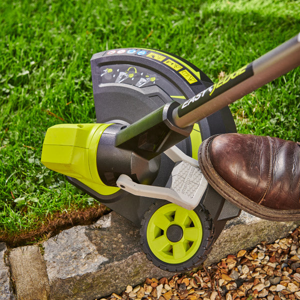 Designed to be lightweight and compact this innovative grass trimmer features Ryobi’s EasyEdge™ step which allows users to switch between trimming and edging quickly and effortlessly. The guard mounted wheel gives maximum control, safety, clear line of sight and enables you to be laser precise and create crisp clean edges around your garden. Incorporating an all-metal boom for durability and a second, adjustable, handle for user comfort over extended use. There is no need to rewind your line, as the design includes an Auto-Feed spool and a 1.6mm line.
