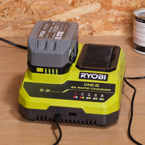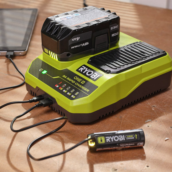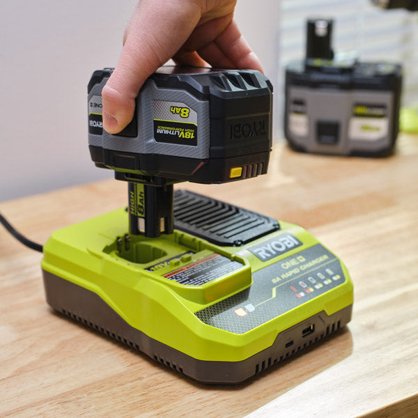 Expand your RYOBI 18V ONE+ System with the RYOBI 18V ONE+ 8A Rapid Charger. Charging has been made faster than ever before. With 4X faster charging than the RC18120 Compact Charger, this charger decreases downtime significantly allowing users to charge a 8Ah Lithium HIGH PERFORMANCE Battery in under an hour.