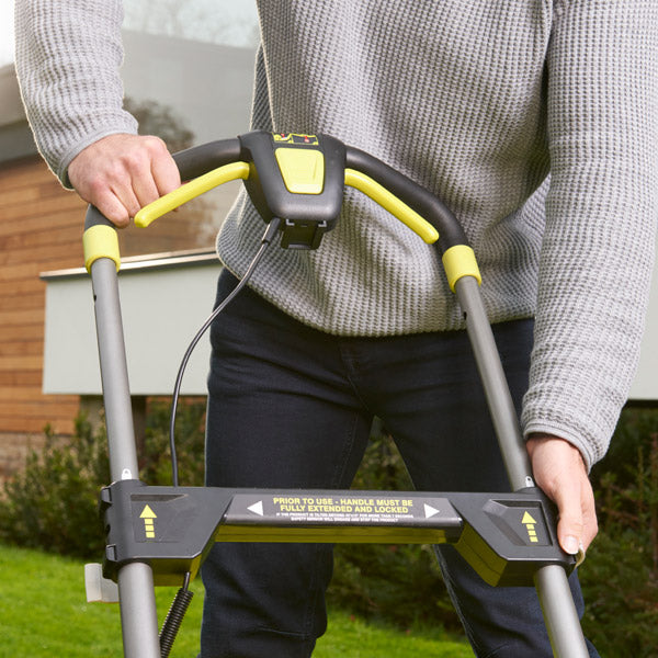 - Folding and removable handles with a collapsible grass catcher for easy and compact storage