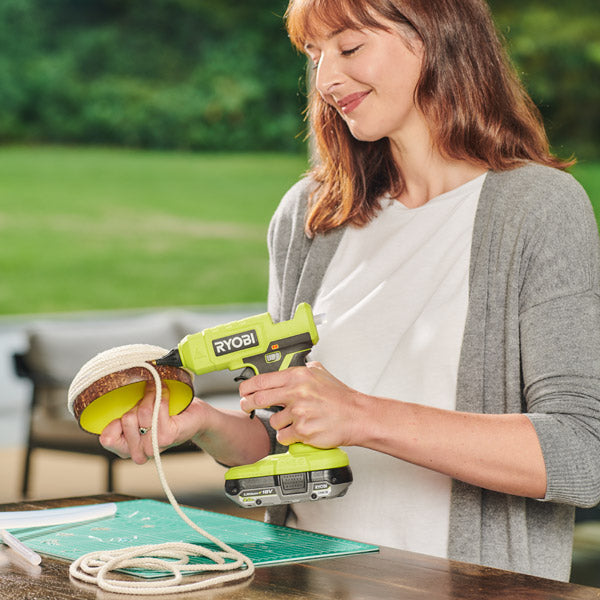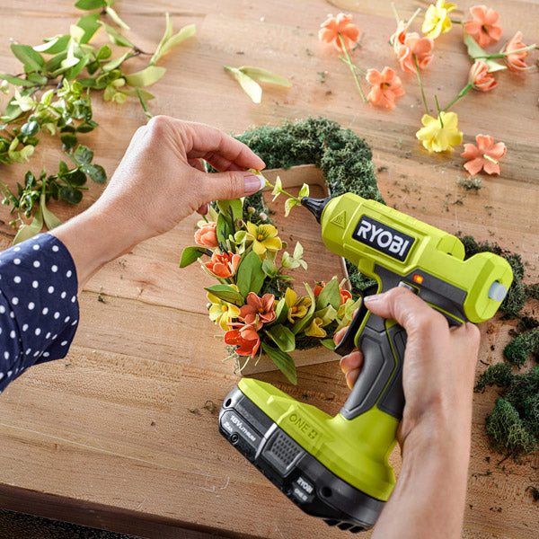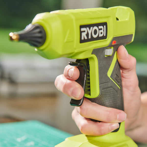 Expand your RYOBI 18V ONE+ System with the 18V ONE+ Glue Gun, delivering battery operated cordless gluing for ultimate portability. This glue gun delivers the same great performance in a more compact size, compared to the previous generation. Rapidly heating up in under 3 minutes, this tool is ready when you are and is designed for heavy duty gluing applications.