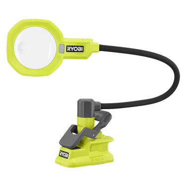 As part of the Ryobi ONE+™ system of over 150 cordless tools for the home, garden, automotive, crafting and much more, the Ryobi 18V ONE+™ RML18-0 Cordless Magnifying LED Clamp Light offers a compact and adjustable cordless light.