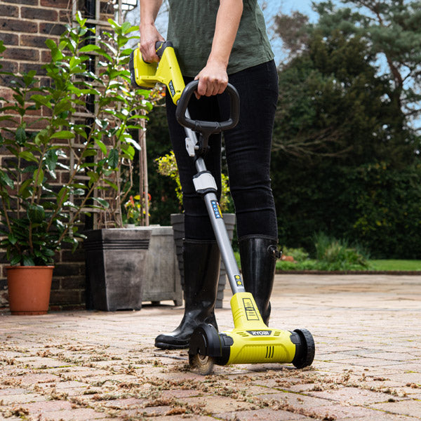 As part of the Ryobi ONE+™ system of over 150 cordless tools for the home, garden, automotive, crafting and much more, the Ryobi 18V ONE+™ RY18PCA-0 Patio Cleaner with wire brush is perfect for clearing weeds and grass from between bricks, paving slabs and so much more!