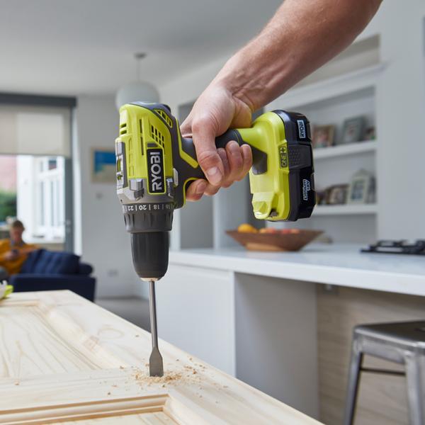 Using the included 2.0Ah battery, the Ryobi R18DD3-120S can drill up to 220 13x50mm holes into wood.