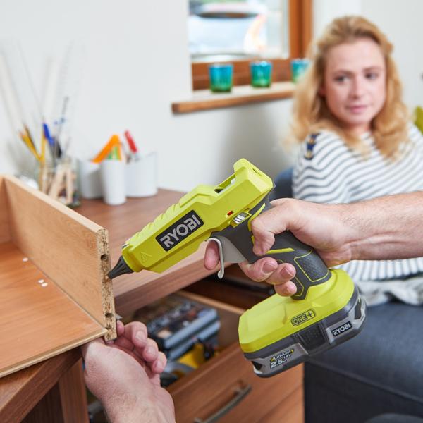 As part of the Ryobi ONE+™ system of over 150 cordless tools for the home, garden, automotive, crafting and much more, the Ryobi 18V ONE+™ R18GLU-0 Glue Gun is perfect for fastening jobs such as securing electrical cables, crafting projects and so much more!