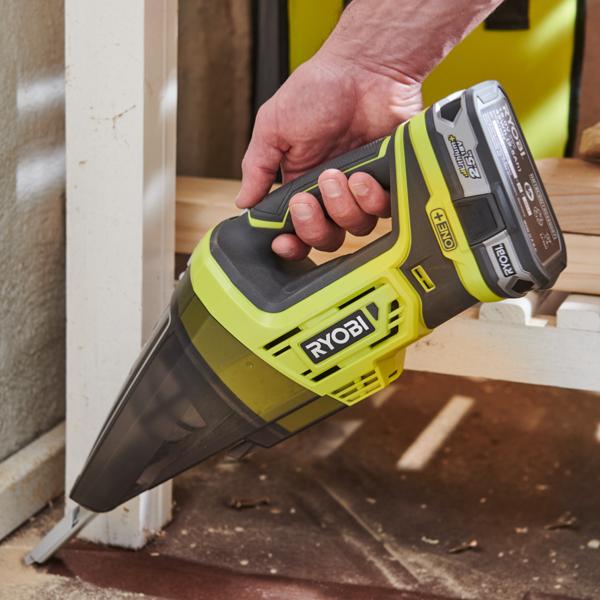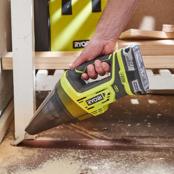 The Ryobi cordless handheld vacuum is part of the Ryobi ONE+™ system of over 150 cordless tools for the home, garden, automotive, crafting and much more. The Ryobi 18V ONE+™ R18HV-0 cordless handheld vacuum is perfect for clearing up spillages and debris in your car, garage, home and so much more!