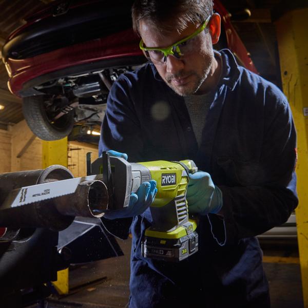 As part of the Ryobi ONE+™ system of over 150 cordless tools for the home, garden, automotive, crafting and so much more, the Ryobi 18V ONE+™ RRS1801M Reciprocating Saw is the perfect demolition saw for cutting through wood, piping and thin metal.