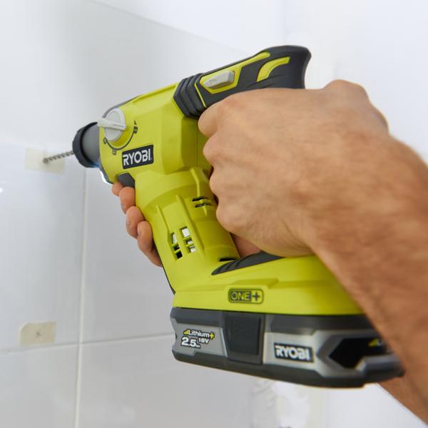 Using the included 5.0Ah battery, the Ryobi R18SDS-0 can drill up to 150 6x40mm holes into concrete on a single charge.