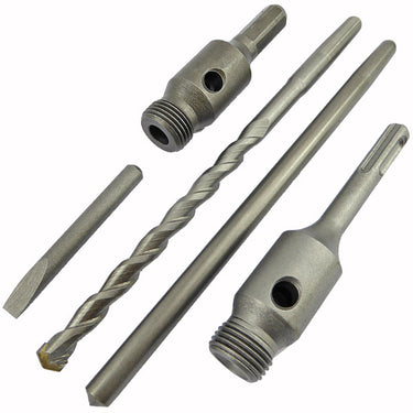 Comprehensive and professional 5 piece accessory set for use with diamond core drills. Pack Contains: Drift Key, Pilot Drill, Guide Rod, SDS Plus Adaptor, Hex Adaptor.